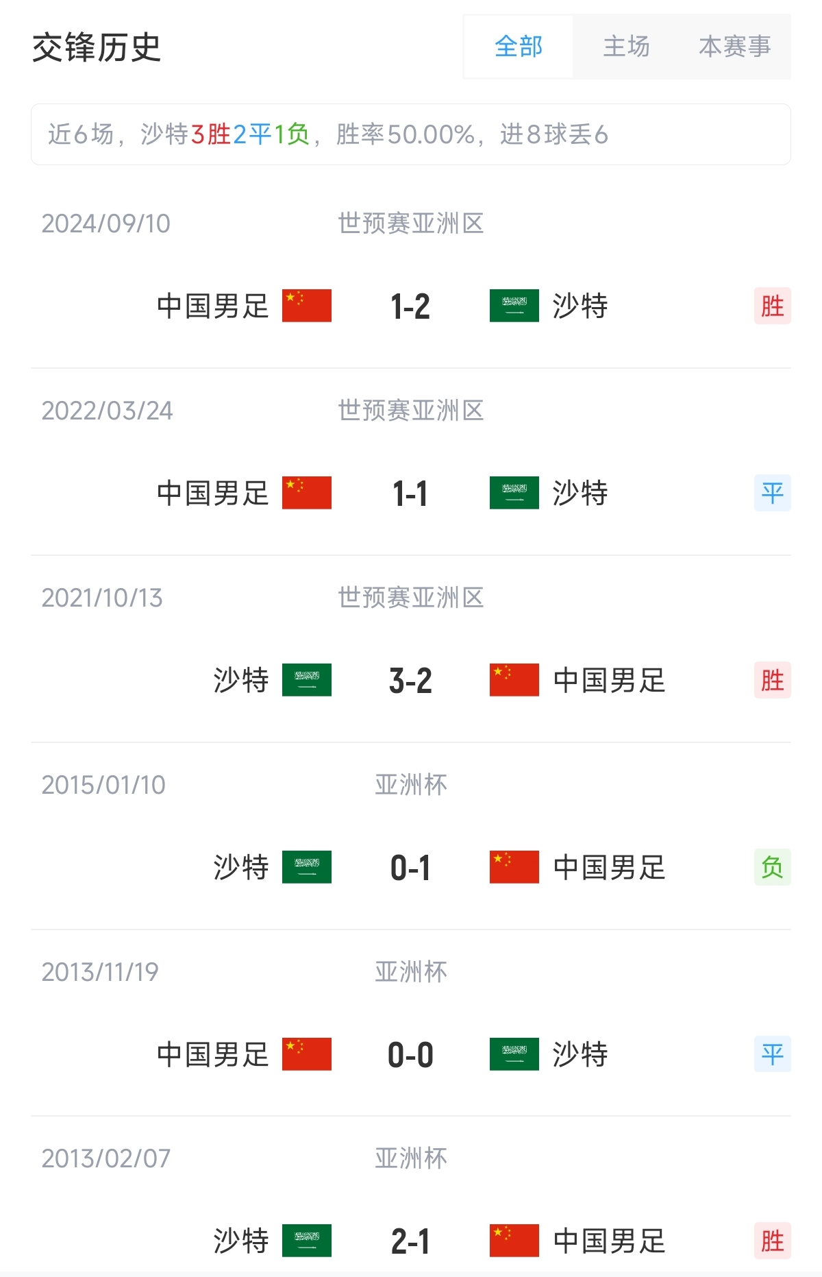 交锋历史